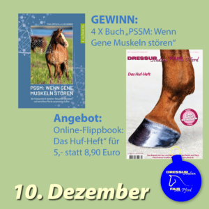 Wer nichts bestellt, kann ebenfalls mitmachen, indem er uns eine Mail an gewinnspiel@dressur-studien.de sendet. Diese Mail nimmt an dem Tag an der Verlosung teil, an dem wir sie erhalten haben.