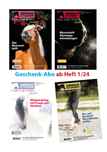 Wer nichts bestellt, kann ebenfalls mitmachen, indem er uns eine Mail an gewinnspiel@dressur-studien.de sendet. Diese Mail nimmt an dem Tag an der Verlosung teil, an dem wir sie erhalten haben.