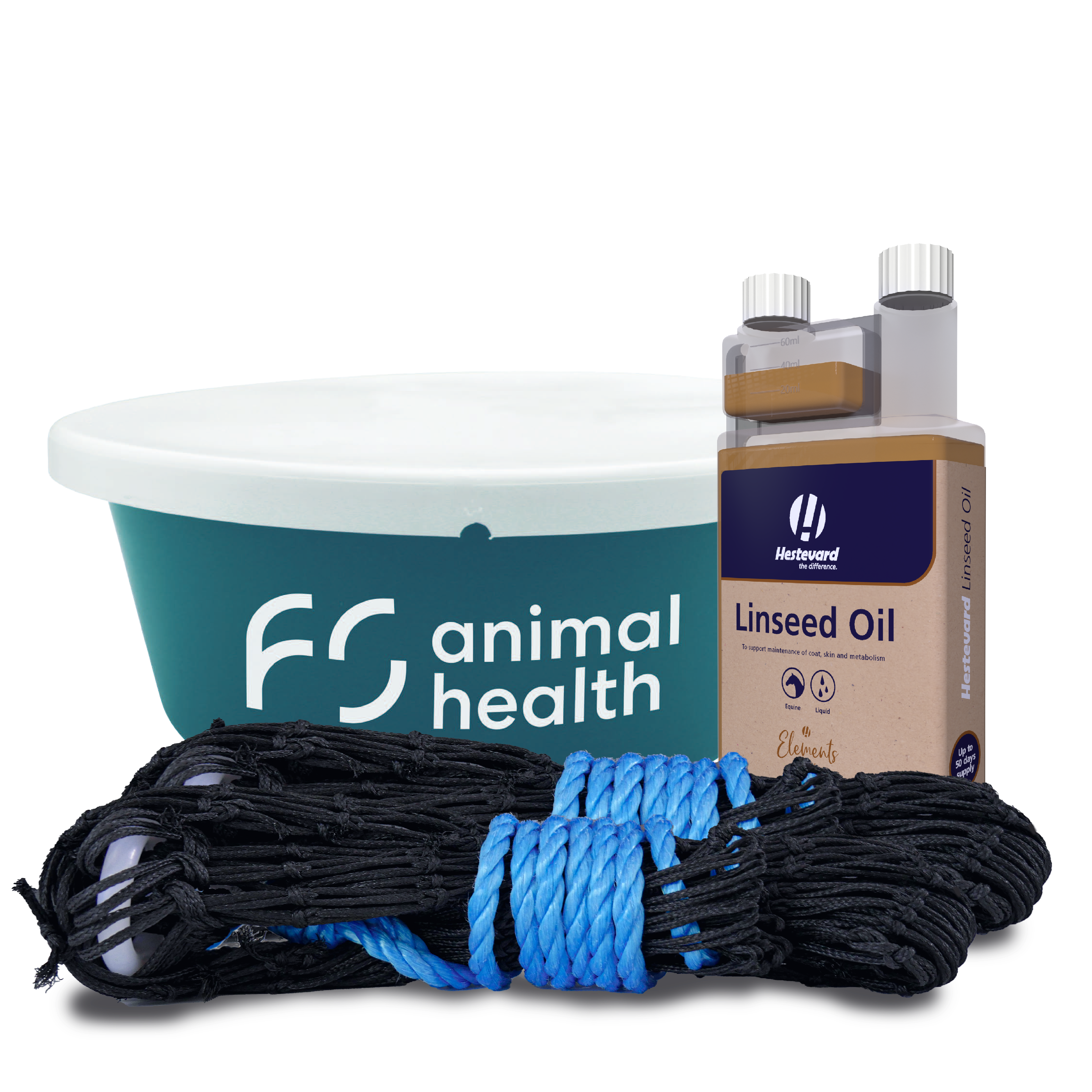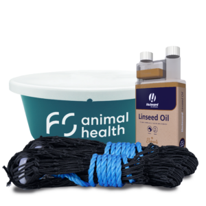 Eine praktische Schüssel, zwei hitzebeständige Heunetze, wie sie zum Bedampfen von Heu ideal sind und eine Flasche gesundes Leinöl sind heute zu gewinnen. Das Paket im Wert von etwas über 80 Euro verdanken wir der Firma Nuveq, die übrigens auch die passenden Bedampfer zu den Heunetzen herstellt 😉