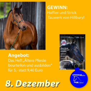 Das Heft „Ältere Pferde beurteilen und ausbilden“ gibt es heute für 5,- statt 9,40 Euro.