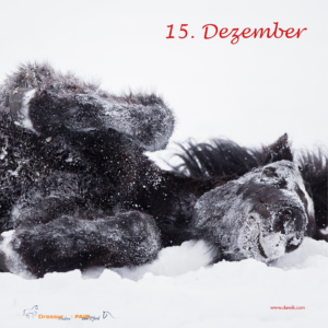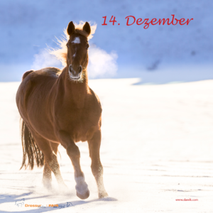 14. Dezember: Gewinn: Fünfmal das Buch „Das Pferd sagt es uns jeden Tag vom ehemaligen Stallmeister der Wiener Hofreitschule Johannes Hammingen. Aus dem Cadmos-Verlag, Wert je 16,95 Euro. Angebot: Unser Heft „Viel Spaß im Gelände“ erhalten Sie heute für 5.- statt 8,90 Euro. Gewinnerinen: Claudia A., Winsen | Jasmin M., Weil im Schönbuch | Marlen G., Lemgo | Iris N., Lemgo | Susanne G., Münsingen