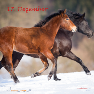 15. Dezember: Gewinn: Wir verlosen viermal das Buch „Feine Sprache- die tiefe Verbindung zum Pferd und zu sich selbst“ aus dem Verlag Müller-Rüschlikon. Angebot: Das Heft „Reiter und Pferd in Balance“ erhalten Sie heute für 5.- statt 8,90 Euro. Gewinnerinnen: Annett K., Adorf | Marianne H., Böklund | Yvonne L., Flintsbach | Celine K., Pirna