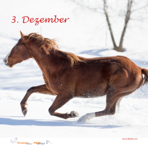 13. Dezember: Gewinn: Fünfmal das Buch „Im Kreis der Herde – Von wilden Pferden lernen“ im Wert von je 30 Euro aus dem Kosmos-Verlag. Angebot: Wir haben noch einmal einige Exemplare unseres vergriffenen Heftes „Die Seitengänge“ aus dem Jahr 2006 für Sie im Angebot. Gewinnerinnen: Nicole G., Friedberg | Nicola B., Paderborn | Corinna W., Kaarst | Deike B., Hude | Ruth G., Sevelen
