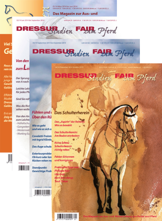 Wir verlosen heute vier Jahresabos der Dressur-Studien: viermal unser Heft druckfrisch im Briefkasten! Je im Wert von 29,95 Euro (Inland) bis 49,95 (Ausland, weltweit).