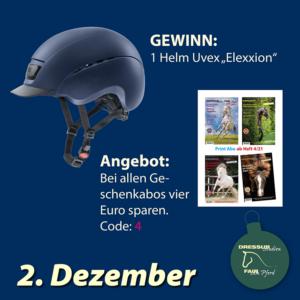 Wer nichts bestellt, kann ebenfalls mitmachen, indem er uns eine Mail an gewinnspiel@dressur-studien.de sendet. Diese Mail nimmt an dem Tag an der Verlosung teil, an dem wir sie erhalten haben.