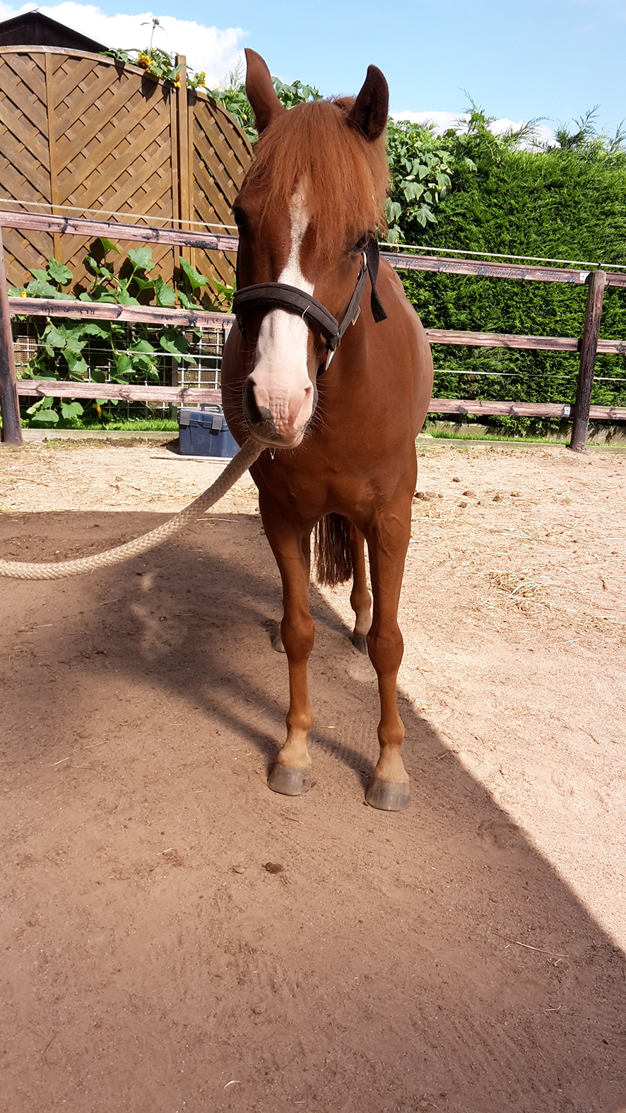 Das ist Theo, er ist ein achtjähriges Reitpony.