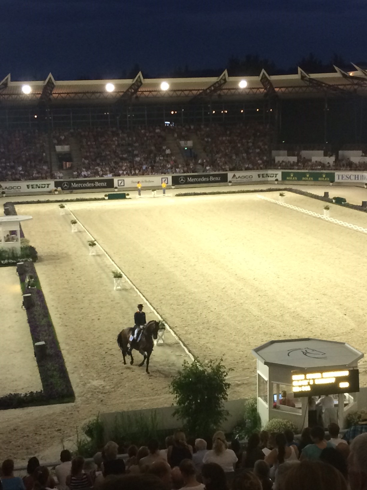 Totilas war natürlich auch da. Sein vierter Auftritt bei einem Turnier nach der langen Pause und wieder gab es zwei erste Plätze für den Rappen mit der großen Fangemeinde. Acht Starts und acht Siege, eine beeindruckende Bilanz. Dass Totilas statt der vollen Piaffetritte jeweils nur zehn zeigte (das ist nach neuem FEI-Reglement erlaubt), störte die Fans und die Richter genauso wenig, wie dass die vorn-links-hinten-rechts-Untaktmäßigkeit wieder sehr deutlich war.
