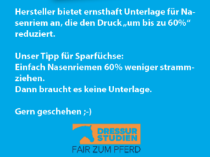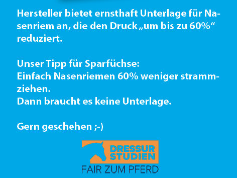 Wir hätten da für die Sparfüchsen unter Ihnen eine Idee: Mindern Sie den Druck auf das Nasenbein, indem sie den Nasenriemen um bis zu 60 Prozent weniger anziehen – dann braucht es auch keine Unterlage.