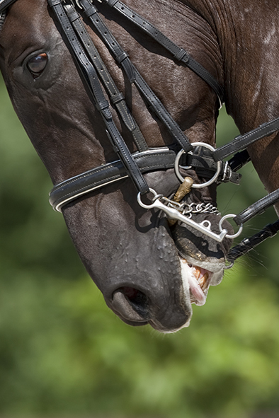 Noch drastischer werden die Zahlen, bei der Untersuchung des Pferdemauls und dem Einsatz von Nasenriemen (nicht Sperriemen!). Maulverletzungen oder Blut am Maul waren bei 9,2% der Pferde sichtbar, besonders erschreckend: Je höher das Turnierlevel, desto mehr Verletzungen wiesen die Pferde auf. Hilary M. Clayton untersuchte außerdem, ob ein sehr loser Nasenriemen oder gar eine Zäumung des Verletzungsrisiko minimieren kann: Doch das Gegenteil war der Fall: Pferde mit zu lockerem oder gar keinem Nasenriemen wiesen ein höheres Verletzungsrisiko auf, als Pferde mit einer korrekt (!) verschnallten Zäumung. Fehlte der Nasenriemen ganz, steig die Verletzungsgefahr um das 2,39-fache.