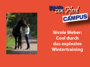 Nicole Weber ist Angst-Therapeutin und Reitercoachin. Wer öfter mit einem mulmigen Gefühl im Bauch in den Sattel steigt und/oder seinen Reitersitz verbessern möchte, der ist bei Nicole an der richtigen Adresse. Wir freuen uns, dass wir sie regelmäßig in unserem FzP-Campus begrüßen können. Daneben halten wir ihre beiden Bücher für so empfehlenswert, dass wir sie in unserem Shop aufgenommen haben.