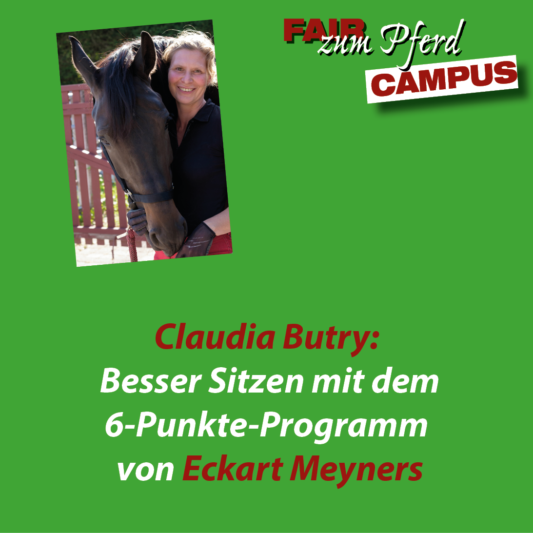 In diesem Online-Video hat uns Claudia Butray den 6-Punkte-Plan von Eckart Meyners vorgestellt und uns zahlreiche Übungen an die Hand gegeben. Claudia Butry ist Trainerin A, Bewegungstrainerin nach Eckart Meyners, OsteoConcept Coach und NeuroRiding-Trainerin.