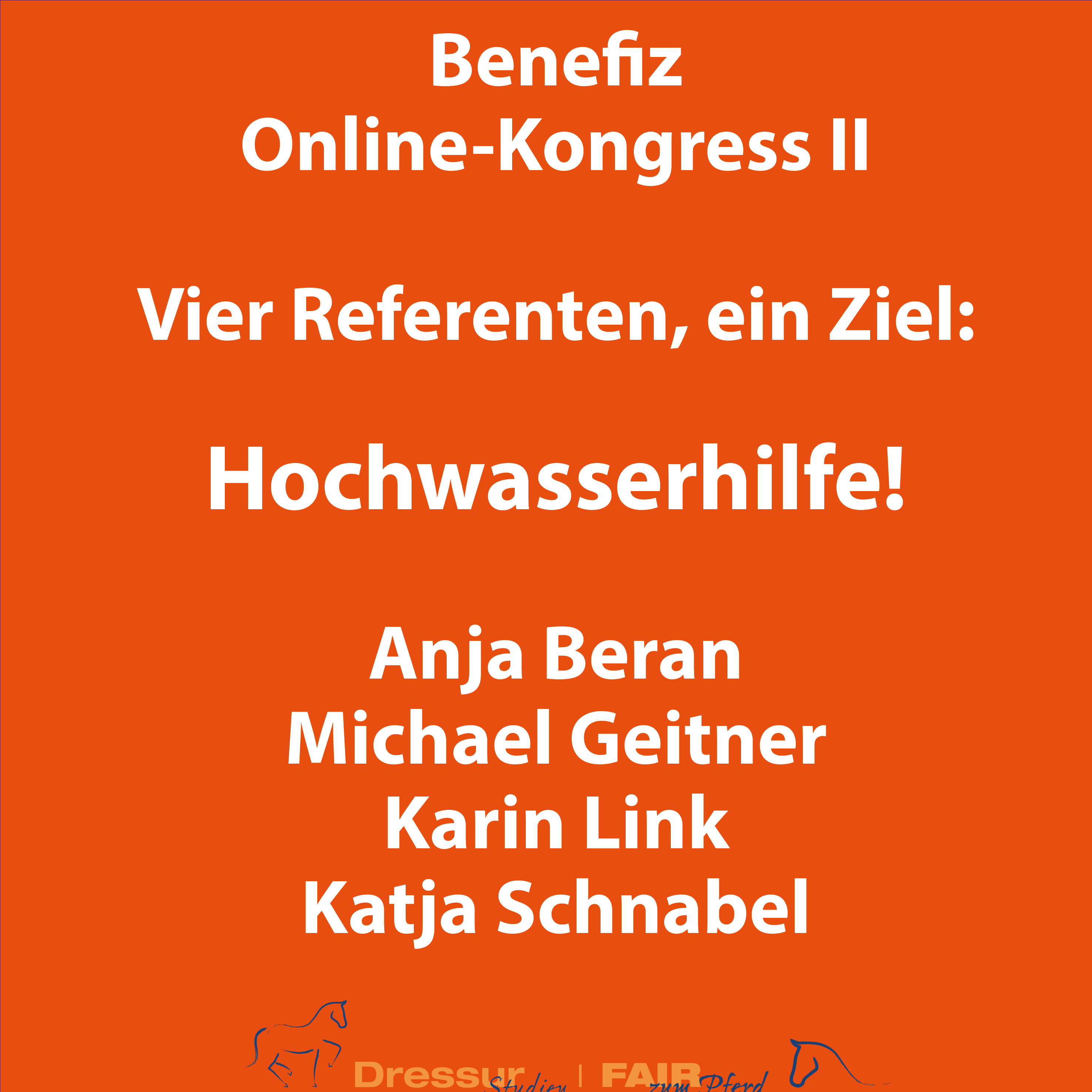 Die Flutkatstrophe im Juli 2021 hat weite Landstriche verwüstet. Tierbesitzer in Teilen Nordrhein-Westfalens und in Rheinland-Pfalz sind voraussichtlich noch bis zur Ernte 2022 auf Hilfe angewiesen. Nachdem wir im August durch unseren ersten Benefiz Online-Kongress schon 5.000 Euro an Equiwent überwiesen haben, wollen wir nun noch ein weiteres Mal helfen. Von jedem Ticket gehen 15 Euro an Equiwent. Die Hilfsorganisation versorgt die betroffenen Tierbesitzer mit Futter und anderem Material, das benötigt wird.