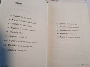 Das erste Buch von Sharon Wilsie „Sprachkurs Pferd – Pferdesprache lernen in zwölf Schritten“ ist ein Bestseller, weil Sharon Wilsie es geschafft hat, in einfachen klaren Schritten die feine Kommunikation mit dem Pferd zu beschreiben. In ihrem zweiten Buch schildert sie, wie sie zu diesem System gekommen ist und erzählt viele Fallbeispiele aus ihrem Alltag mit Pferden. Die Geschichten unterstreichen anrührend ihre „Pferdesprache“ und durch die konkreten Fälle, helfen sie noch besser zu verstehen, wie Pferde – auch mit uns – kommunizieren können. Ich empfinde das Buch als eine schöne und sinnvolle Ergänzung zu ihrem ersten Buch. Natürlich kann man auch nur dieses Buch von ihr lesen, dann fehlen einem aber die konkreten Erklärungen, wie diese „Pferdesprache“ funktioniert. Besser: Erst das Lehrbuch von ihr lesen und dann die berührenden Fallbeispiele aus ihrem zweiten Buch lesen.