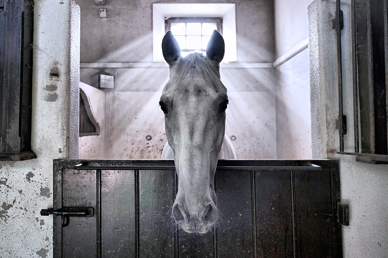 Ein fotografisches unzweifelhaft beeindruckendes Bild, nicht zuletzt durch die Sonnenstrahlen, die durch das Fenster scheinen und den Pferdekopf einrahmen.
