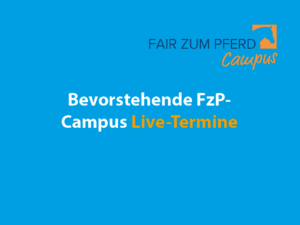 - FzP-Campus Spezial zum Sonderpreis von 1 €: „Resilienz bei Pferden: Vertrauen und Gelassenheit finden“ mit Marlitt Wendt,. Anmeldelink und weitere Infos.