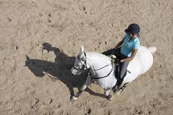 Das ist ein Indiz für das Reiten mit ungleich hohen Händen. Der Reiter wird durch die Zentrifugalkraft verstärkt nach außen gesetzt und gibt über der inneren Hüfte nach. Dadurch senkt sich die innere Schulter und mit ihr die innere Hand. Korrigiert werden kann der Fehler, indem der Reiter beide Gesäßknochen mehr nach innen bringt und seine innere Seite nach oben und unten ausstreckt, sodass die Schultern wieder auf einer Höhe sind. Das Problem tritt auch bei kleinen Wendungen in hoher Geschwindigkeit auf: Das Pferd neigt sich in der Vertikalen etwas nach innen und mit ihm auch der Reiter, sodass die innere Hand tiefer kommt. Wirkt er dieser Tendenz nicht entgegen, kommt es zum Abstützen auf dem inneren Zügel.