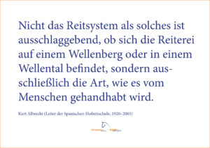 Nicht das Reitsystem als solches ist ausschlaggebend, ob sich die Reiterei auf einem Wellenberg oder in einem Wellental befindet, sondern ausschließlich die Art, wie es vom